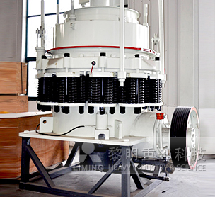 鵝卵石破碎機(jī)主要部分由機(jī)架、定錐總成、動(dòng)錐總成、彈簧機(jī)構(gòu)、碗型軸架部和傳動(dòng)裝置組成。輔助部分由電氣系統(tǒng)、稀油潤(rùn)滑系統(tǒng)、液壓清腔系統(tǒng)組成。其中定錐總成主要有調(diào)整套、軋臼壁,動(dòng)錐總成主要由主軸、動(dòng)錐體、破碎壁組成,傳動(dòng)部分主要由大帶輪、傳動(dòng)軸、小錐齒輪、大錐齒輪等組成。