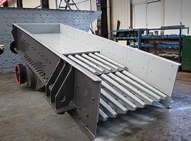物料先通過TSW0936振動給料機(jī)連續(xù)均勻地輸送至PE600×900顎式破碎機(jī)進(jìn)行粗破,后進(jìn)入中轉(zhuǎn)料倉,當(dāng)達(dá)到一定數(shù)量時(shí)再進(jìn)入HST160H單缸液壓圓錐破碎機(jī)進(jìn)行中細(xì)碎,中細(xì)碎后的物料經(jīng)由4YZS2160振動篩篩分,符合成品規(guī)格的直接進(jìn)入成品區(qū),大于成品規(guī)格的則要再次返回破碎,最終形成的砂石粒度為:0-5mm、5-10mm、10-20mm、20-40mm。